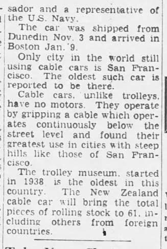 Here is a collection of newspaper articles that may relate to any one of the three names, Seashore Electric Railway/New England Electric Railway Historical Society/Seashore Trolley Museum, that are, or have been used over the years. In some cases, articles/clippings may feature individuals involved with the organization.