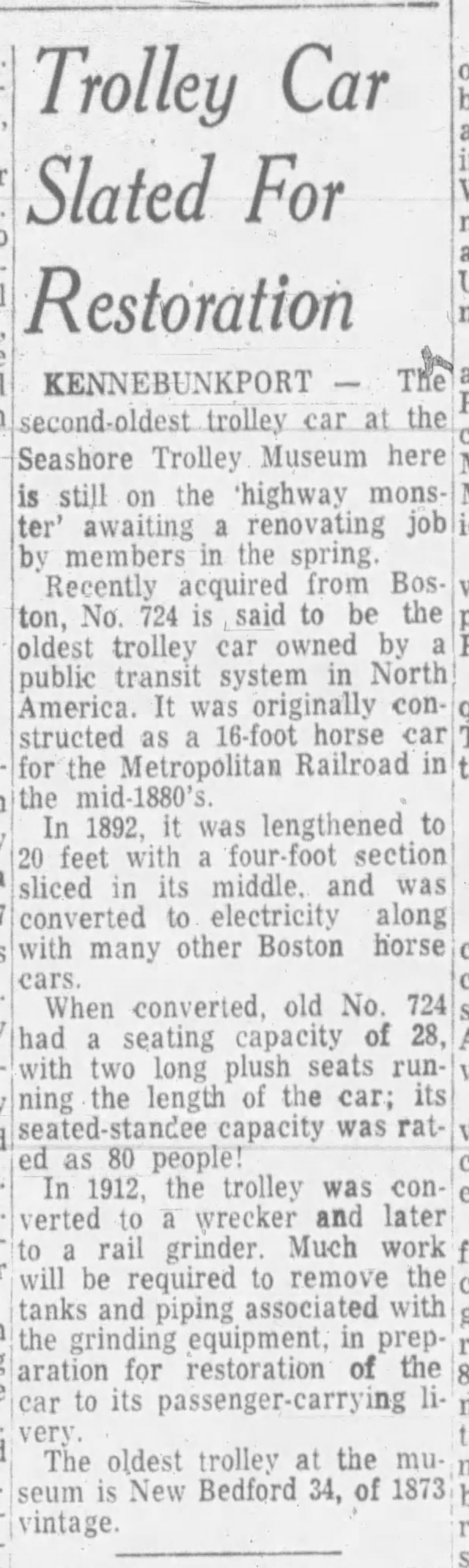 Click Here: to see the post - August 20, 1961 - Worcester Sunday Telegram - Seashore Trolley Museum